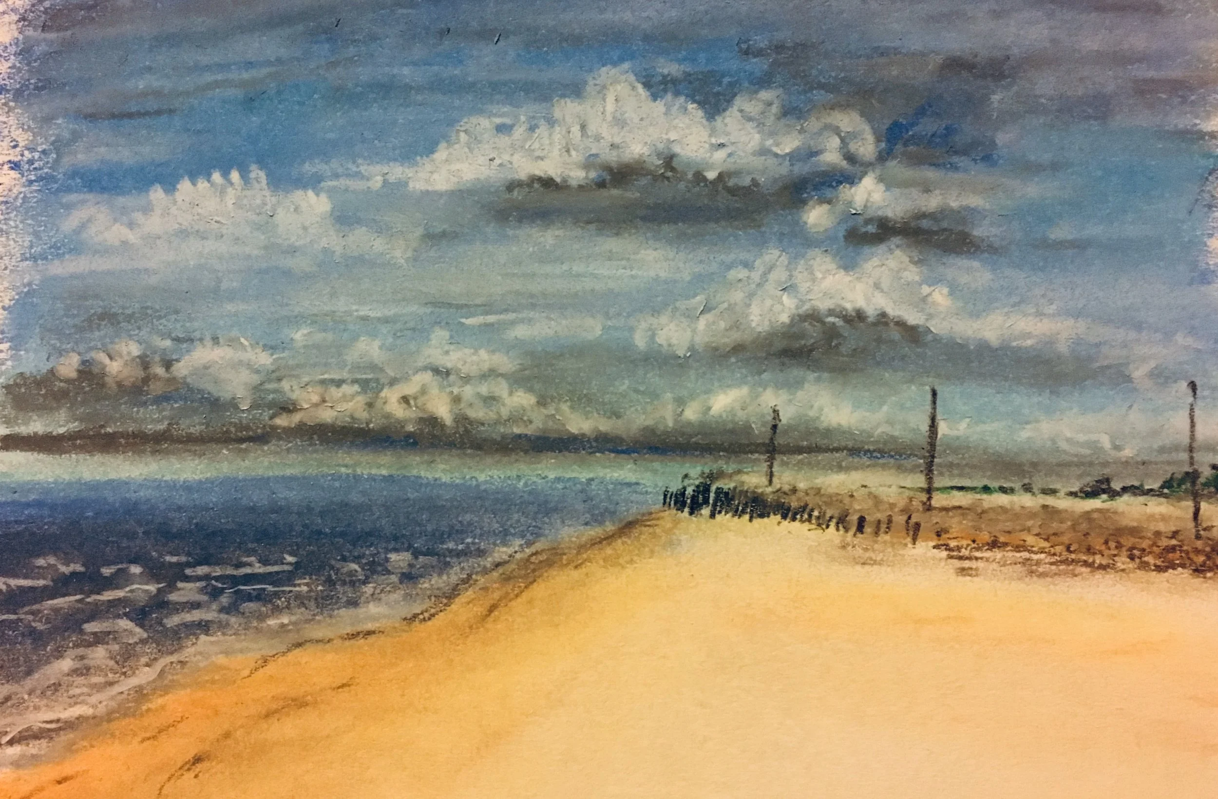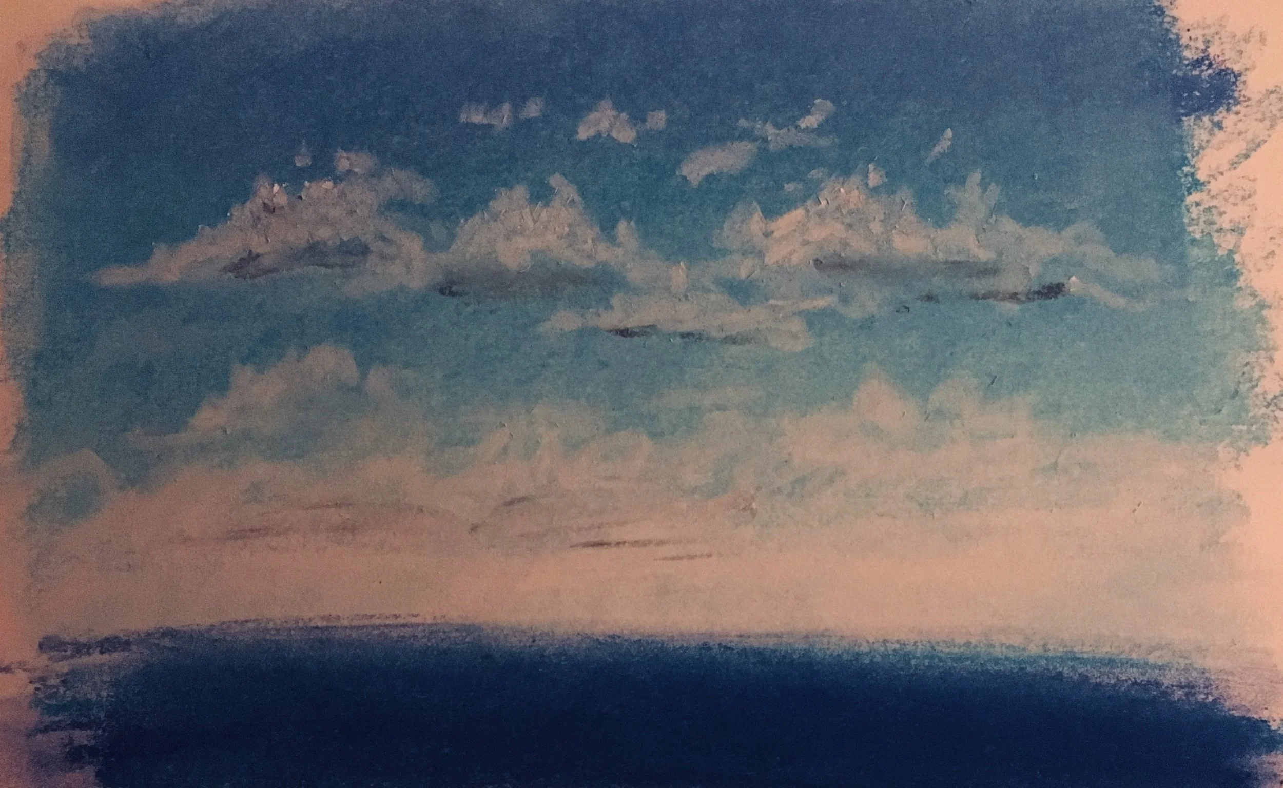 Sketch #1 Clouds over a sea. Getting familiar with what clouds do. It is true what they say, every cloud has a silver lining! Horizon clouds are of course much easier!
